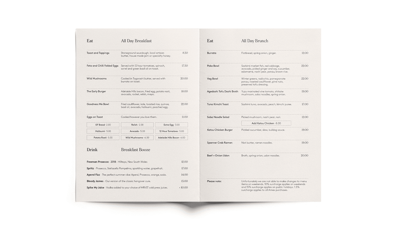 Wine bar out front, cafe out back – creating contrasting but complementary brand identities for two venues, connected by the kitchen.